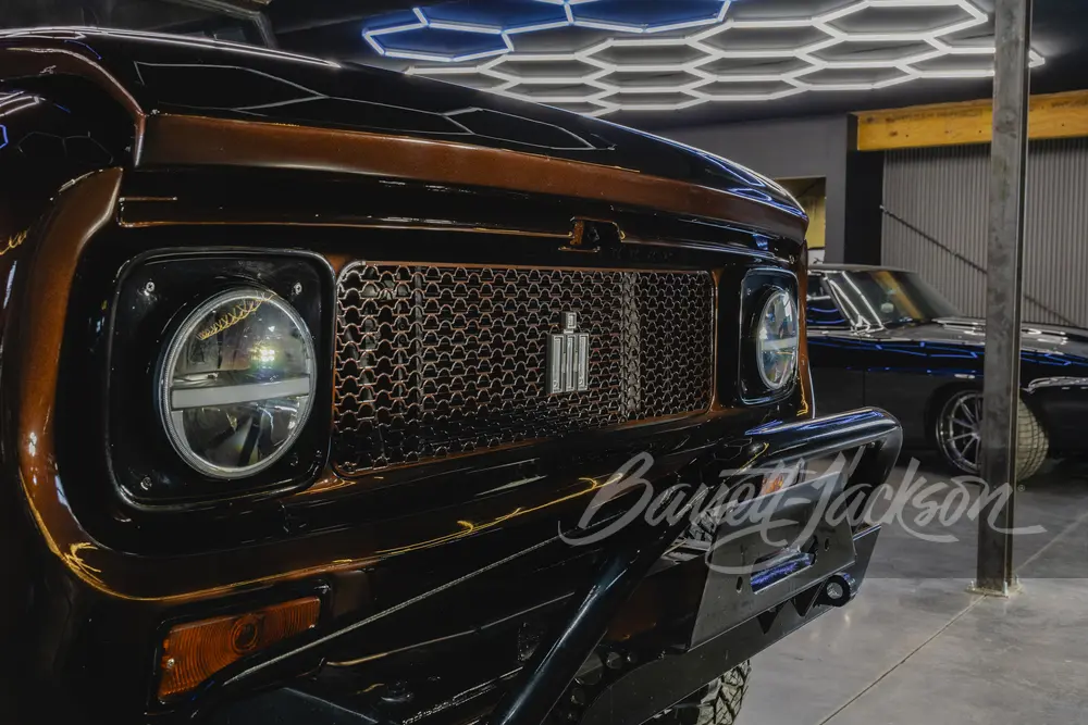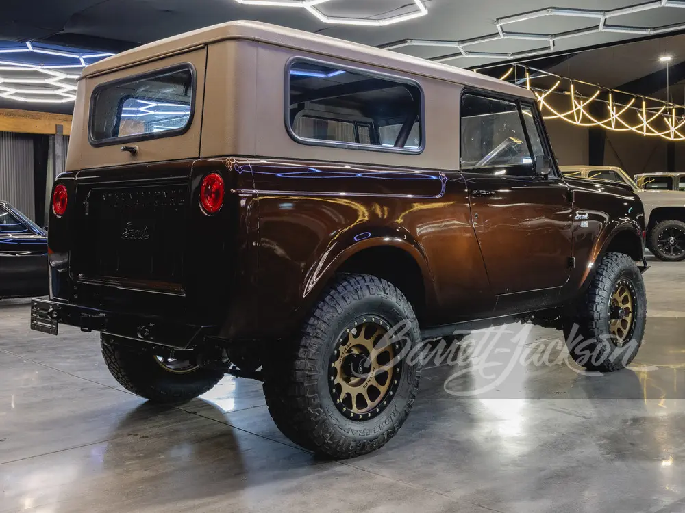 This 1961 International Scout 80 features the same proven 420hp 6.2L L86 V-8 and 8-speed automatic drivetrain in a striking dark metallic brown finish. The brown leather interior complements the exterior perfectly, creating a cohesive and refined look. Modern upgrades include power steering, power disc brakes, A/C, and a full audio system.