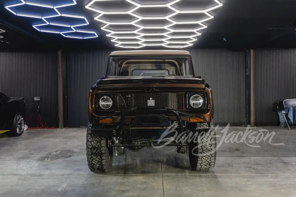 This 1961 International Scout 80 features the same proven 420hp 6.2L L86 V-8 and 8-speed automatic drivetrain in a striking dark metallic brown finish. The brown leather interior complements the exterior perfectly, creating a cohesive and refined look. Modern upgrades include power steering, power disc brakes, A/C, and a full audio system.
