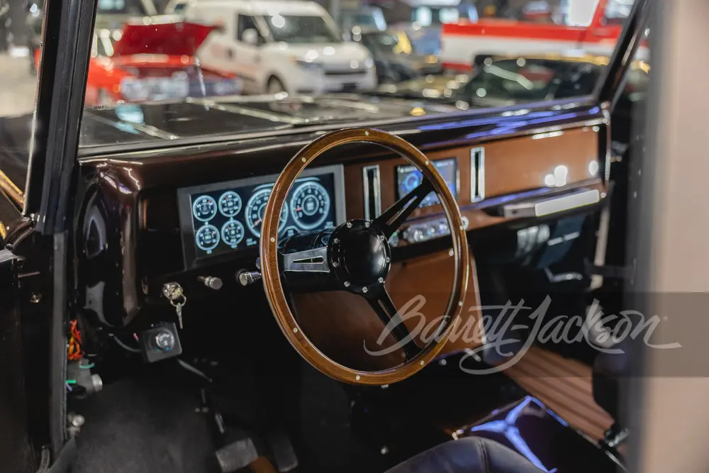 Built alongside its 1962 sibling, this '61 Scout received the same meticulous treatment: a fully boxed and reinforced chassis, GM 6.2L L86 V-8 with 420hp, and 8L90 8-speed automatic. The dark metallic brown paint is a custom-mixed color applied with multiple clear coats for incredible depth. The interior was trimmed in matching brown leather with contrast stitching, and features a custom gauge cluster, Vintage Air climate control, and a compact but powerful audio system.